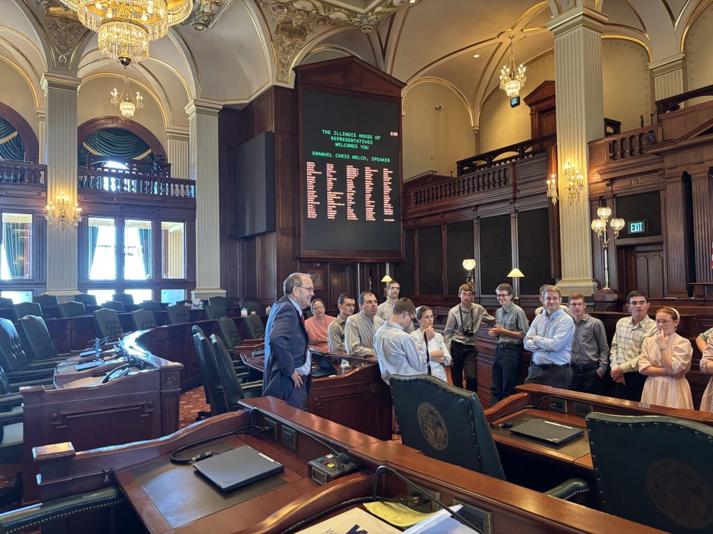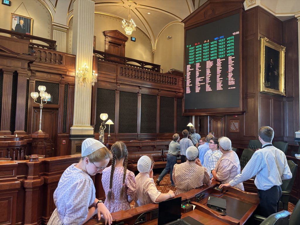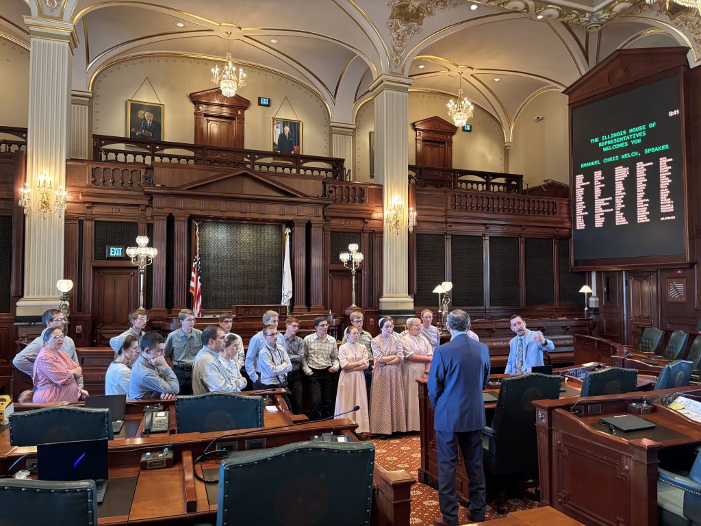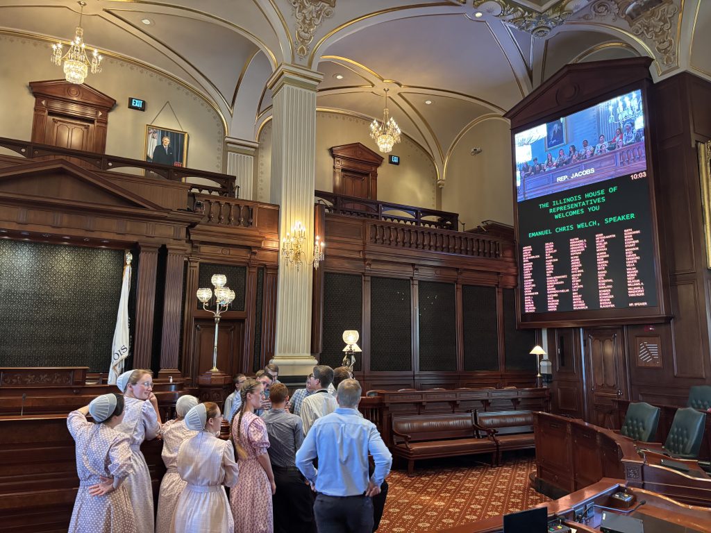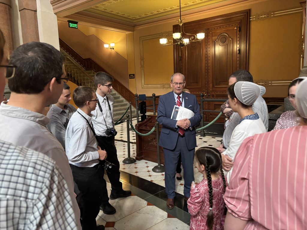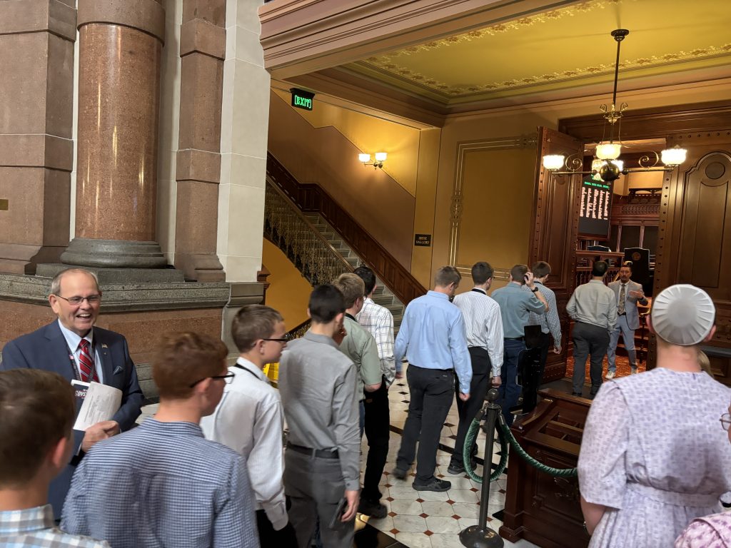 State Rep. Paul Jacobs welcomed the students and families of Mt. Pleasant Mennonite School to the Illinois Capitol on Thursday. mt. Pleasant serves the rural area of southern Illinois in the 118th District.